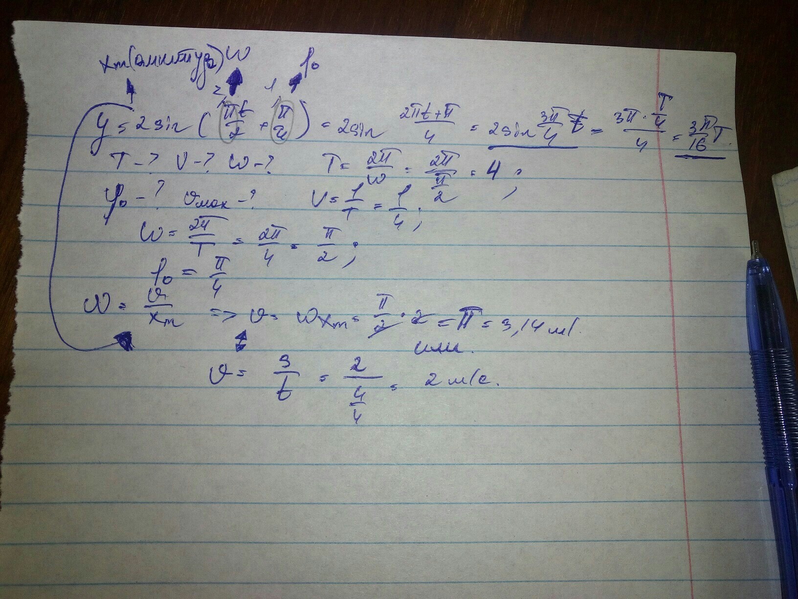 у = 2sin(πt/2 + π/4). Найдите амплитуду, период, частоту, циклическую