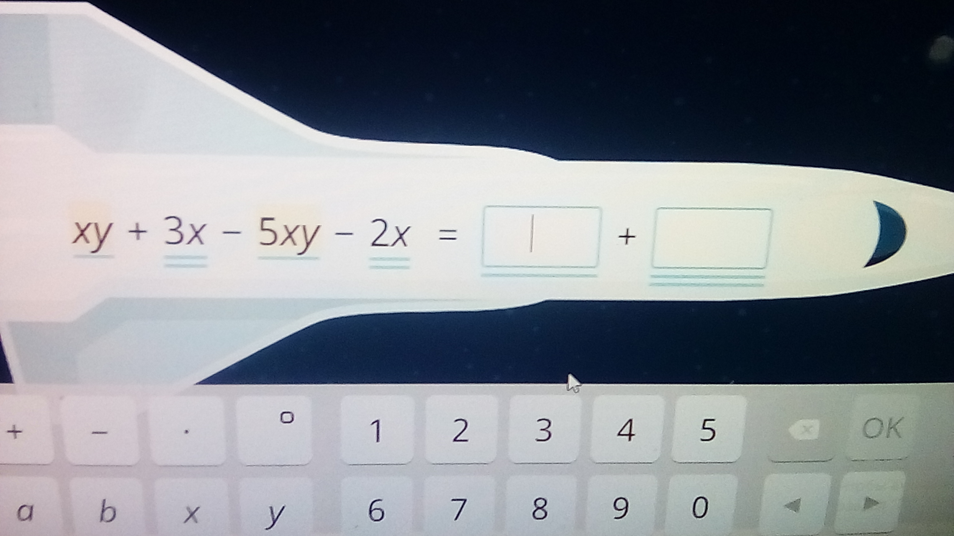 xy + 3x - 5xy - 2x = -4xy + x = x + (-4xy)