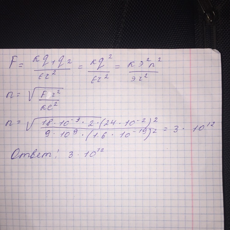 два тела с равными положительными зарядами отталкиваются в керосине с силой 18 мН, находясь в 24 см друг от друга. Сколько электронов потеряло каждое тело?