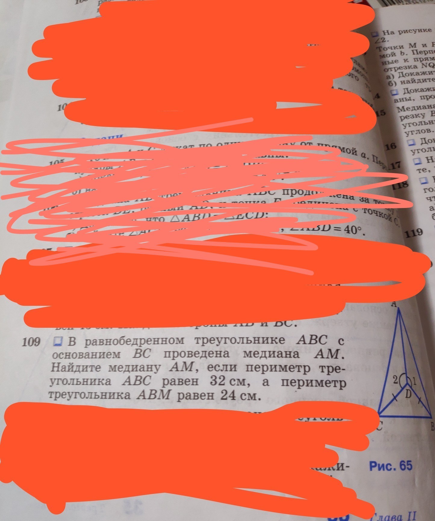 24=32/2+AM, отсюда АМ=8