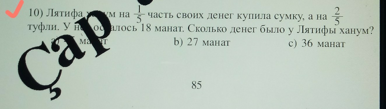 18 : 2/5 = 18 * 5/2 = 45манат у неё было