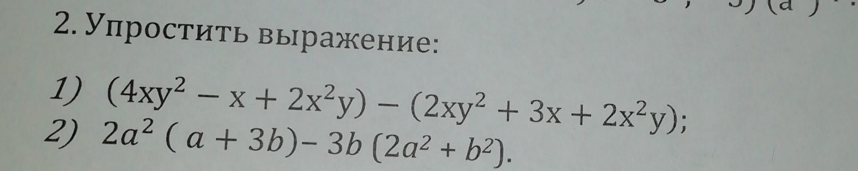 4 {x}^{2}  - x + 2 {x}^{2} y - 2x {y}^{2}  - 3x - 2 {x}^{2} y = 2 {x}^{2}y - 4x = 2x(xy - 2)  \ 2 {a}^{3}  + 6 {a}^{2} b - 6 {a}^{2} b - 3 {b}^{3}  = 2 {a}^{3}  - 3 {b}^{3}