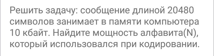 При длине сообщения 20480 символов на 1 символ приходится 10240 / 20480 = 0.5 байта = 0.5 × 8 = 4 бита.