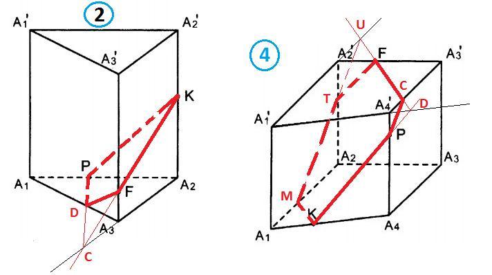 1. Соединить точки K и P (на грани A₄A₁A₁¹A₄¹). Отрезок KP
