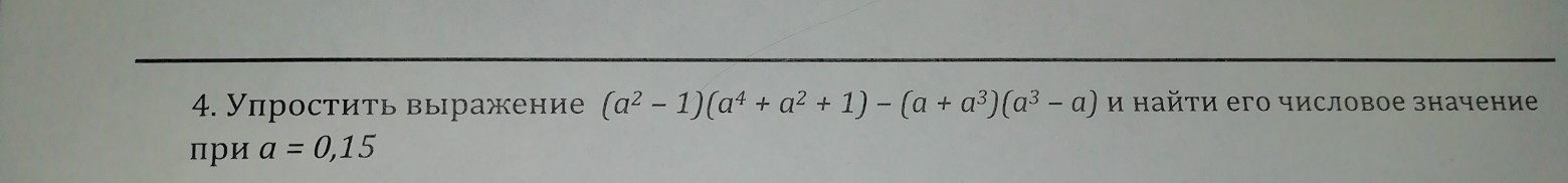 (а^2-1)(а^4+а^2+1)-(а+а^3)(а^3-а)=а^6-1-(а^3+а)(а^3-а)=а^6-1-(а^6-а^2)=а^6-1-а^6+а^2=-1+а^2