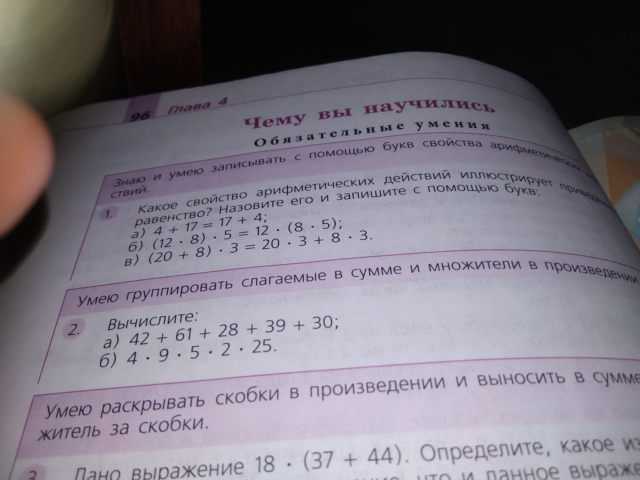 Какое свойство арифметических действий иллюстрирует приведённое равенство? Назовите его и запишите с помощью букв: