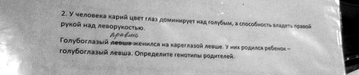 Т к ребенок получает один аллель от матери, другой от отца, то отец гетерозиготный правша, мать гетерозиготная карегазая