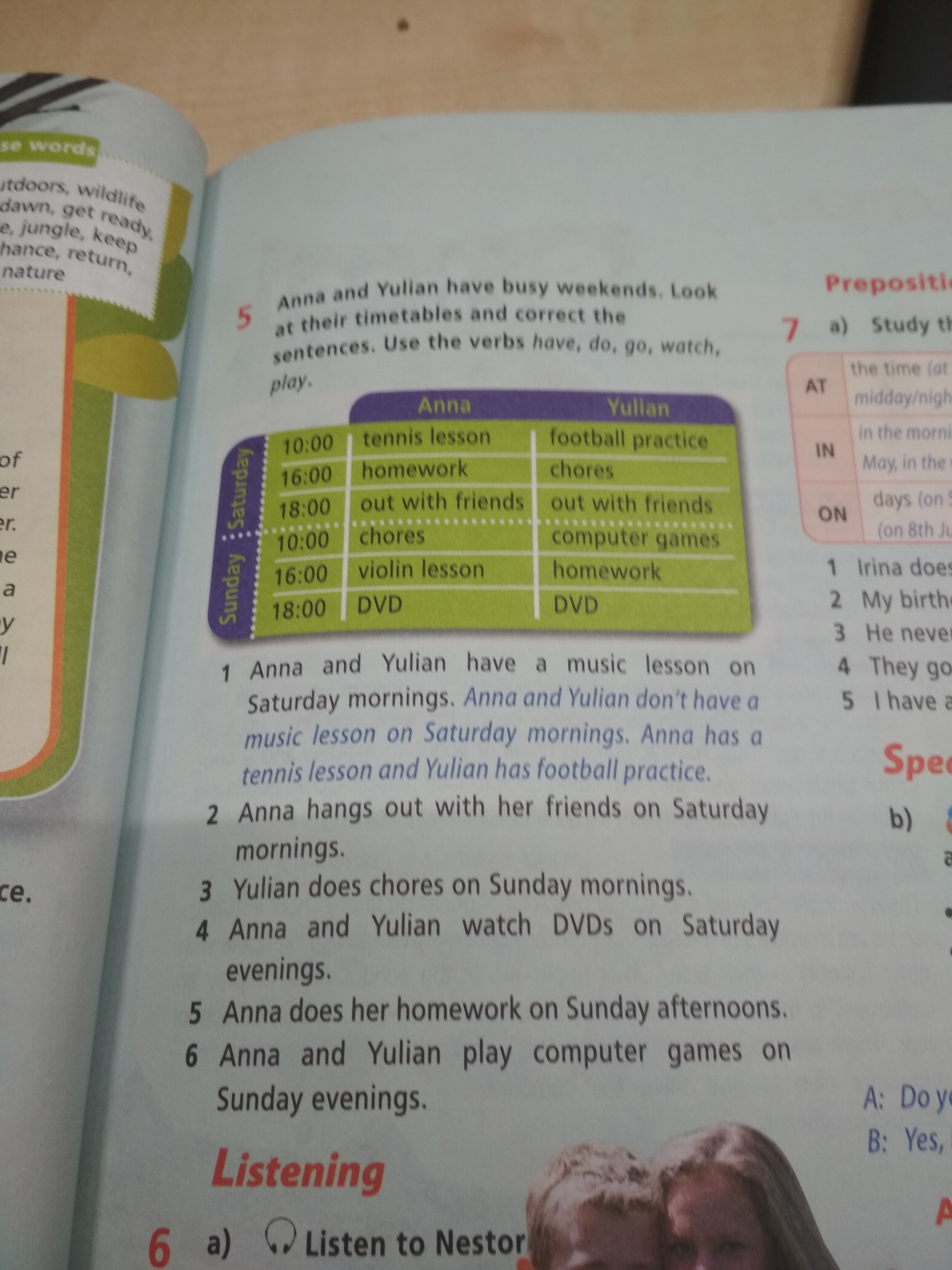 4. Anna and Yulian don't watch DVDs on Saturday evenings. Anna and Yulian go out with friends on Saturfay evenings. Anna and Yulian watch DVDs on Saunday evenings.