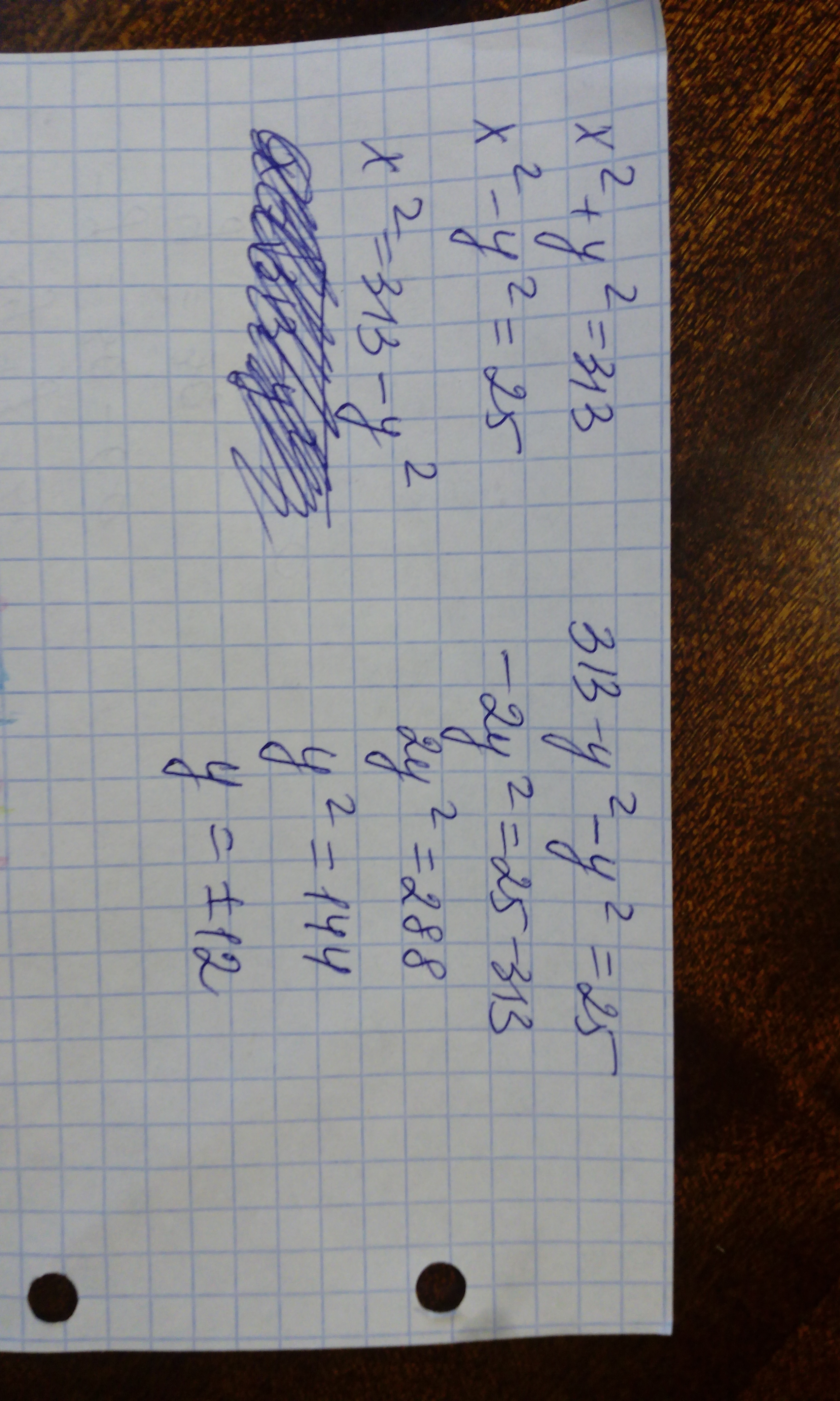 сумма квадратов чисел равна 313 а разность их квадратов равна 25 Найдите эти числа и в ответе укажите их разность