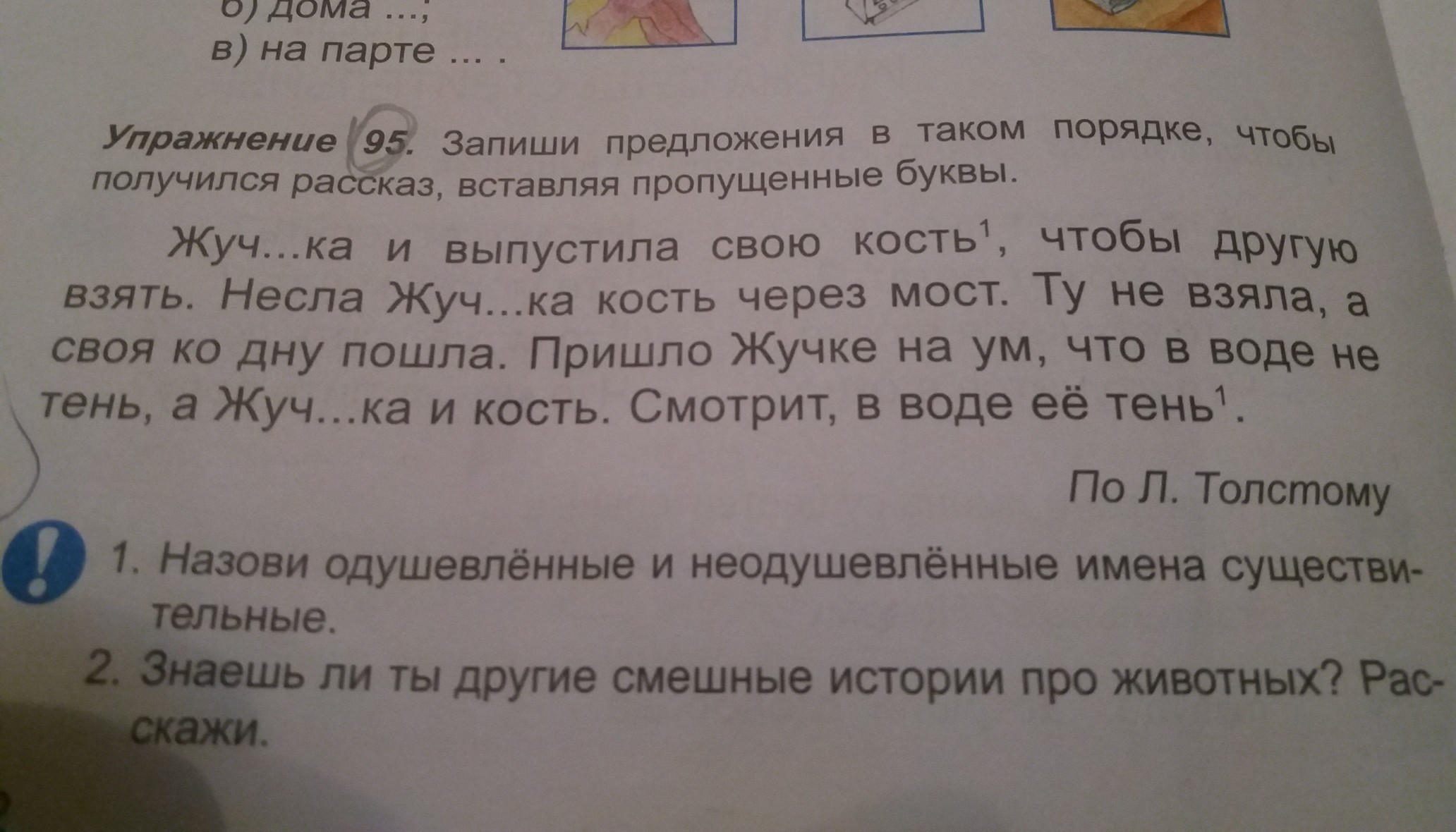 Несла Жучка кость через мост. Смотрит, в воде её тень. Пришло Жучке на ум, что в воде не тень, а Жучка и кость. Жучка и выпустила свою кость, чтобы другую взять. Ту не взяла, а своя ко дну пошла