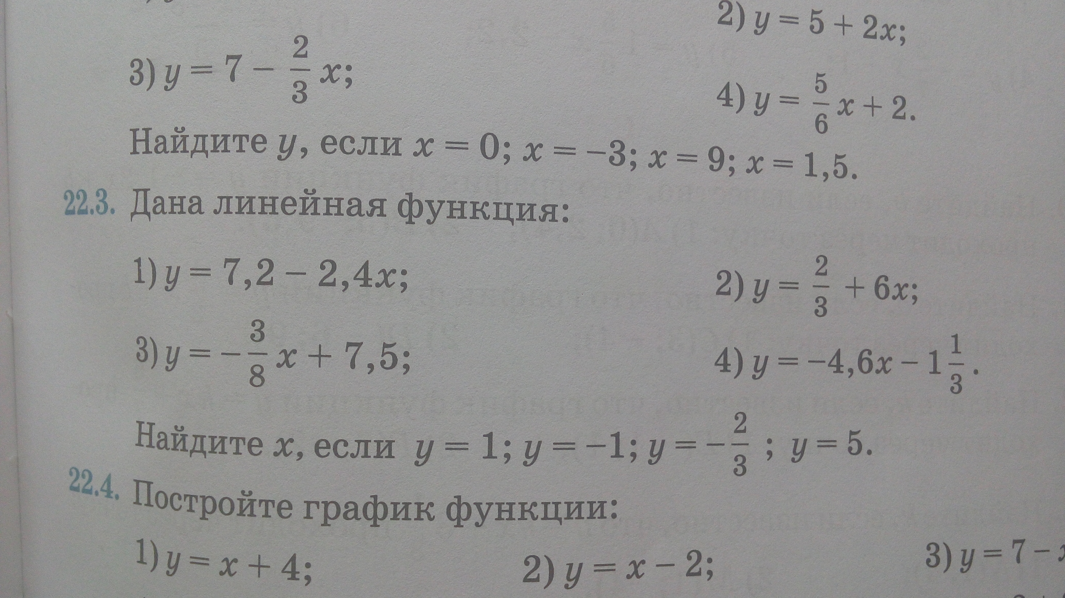 Найдите х, если у = 1; у = -1; у = -2/3; у = 5.