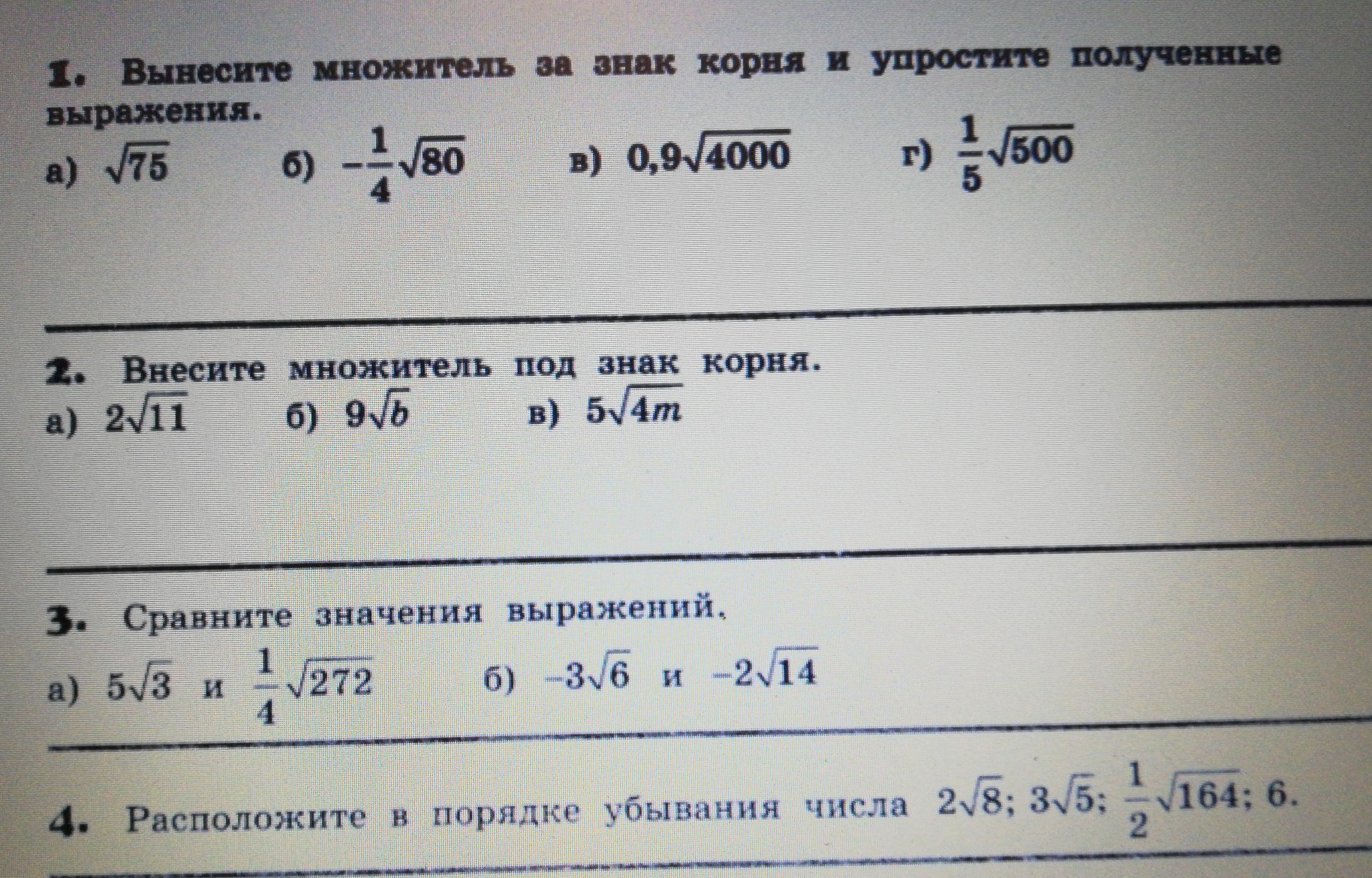 б) -1/4√80= -1/4√(16×5)= -1/4√(4²×5)= -1/4*4√5= -√5