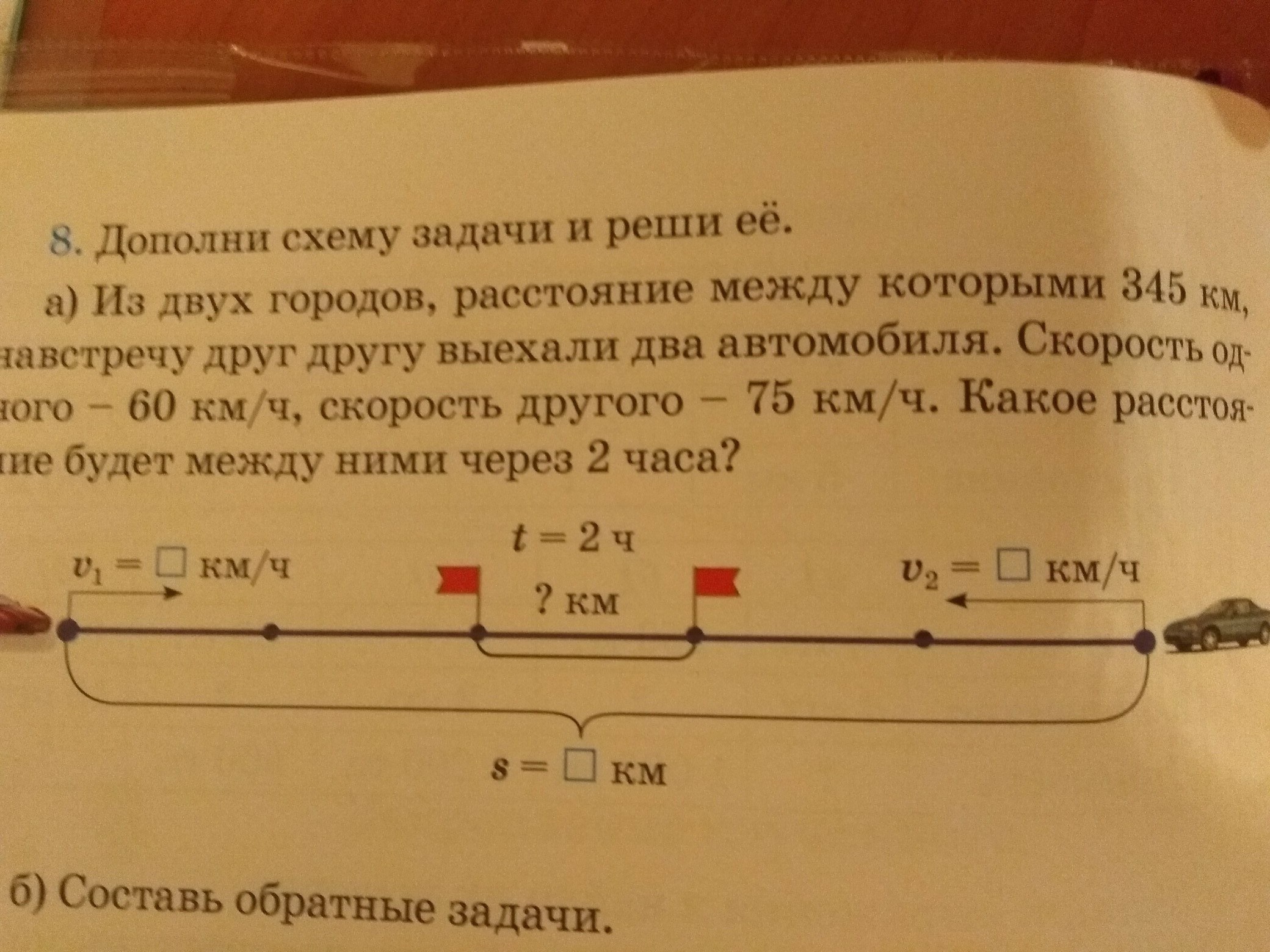 60+75=135км/ч скорость сближения 135*2=270км проедут оба за 2 часа 270+75=345 км расстояние между городами Ответ:345 км расстояние между городами