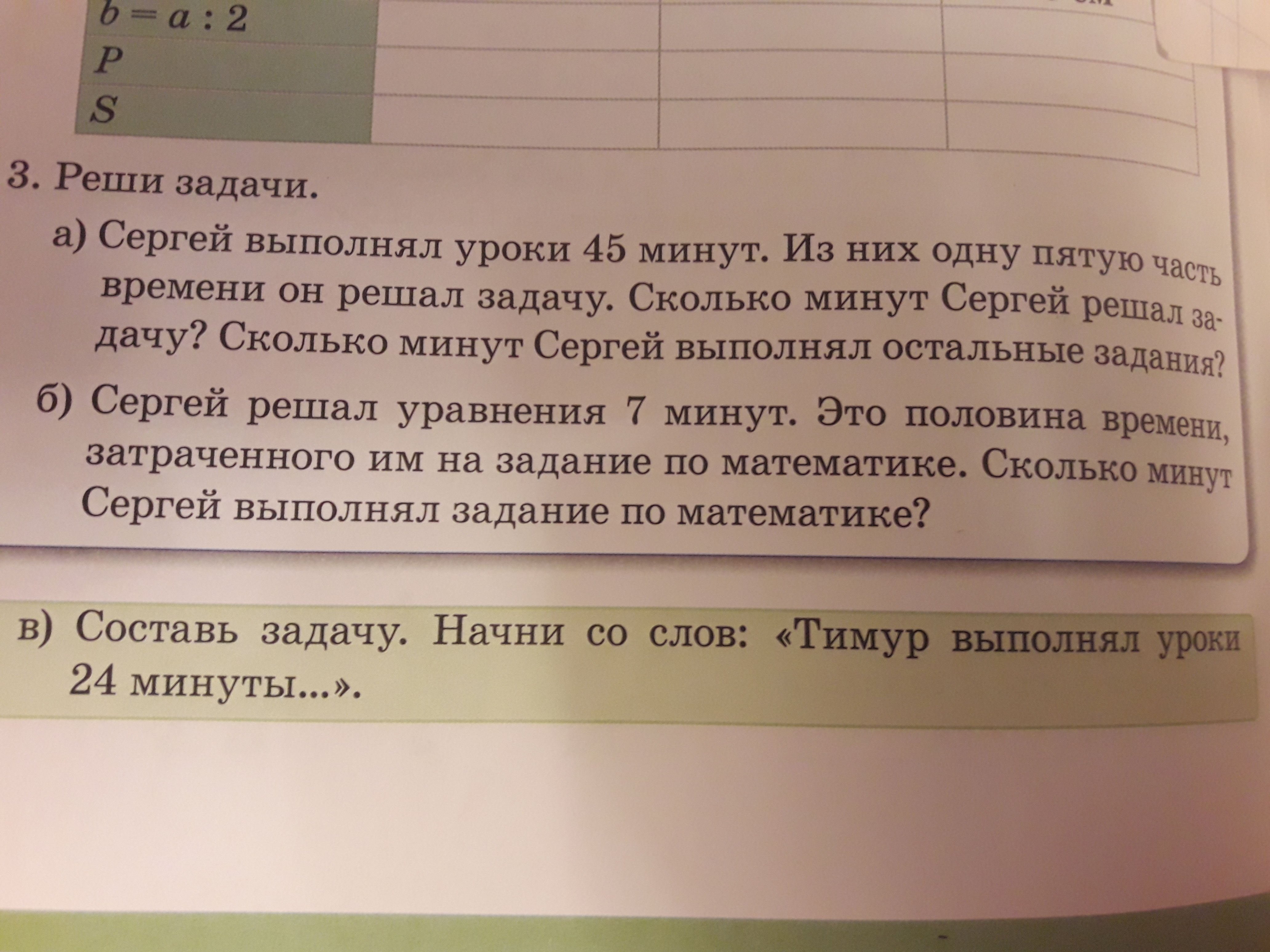 7*2=14(мин)-Сергей выполнял задание по математике.