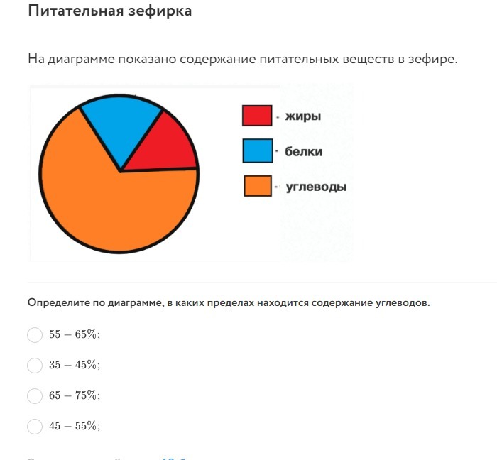 Определите по диаграмме, в каких пределах находится содержание углеводов.