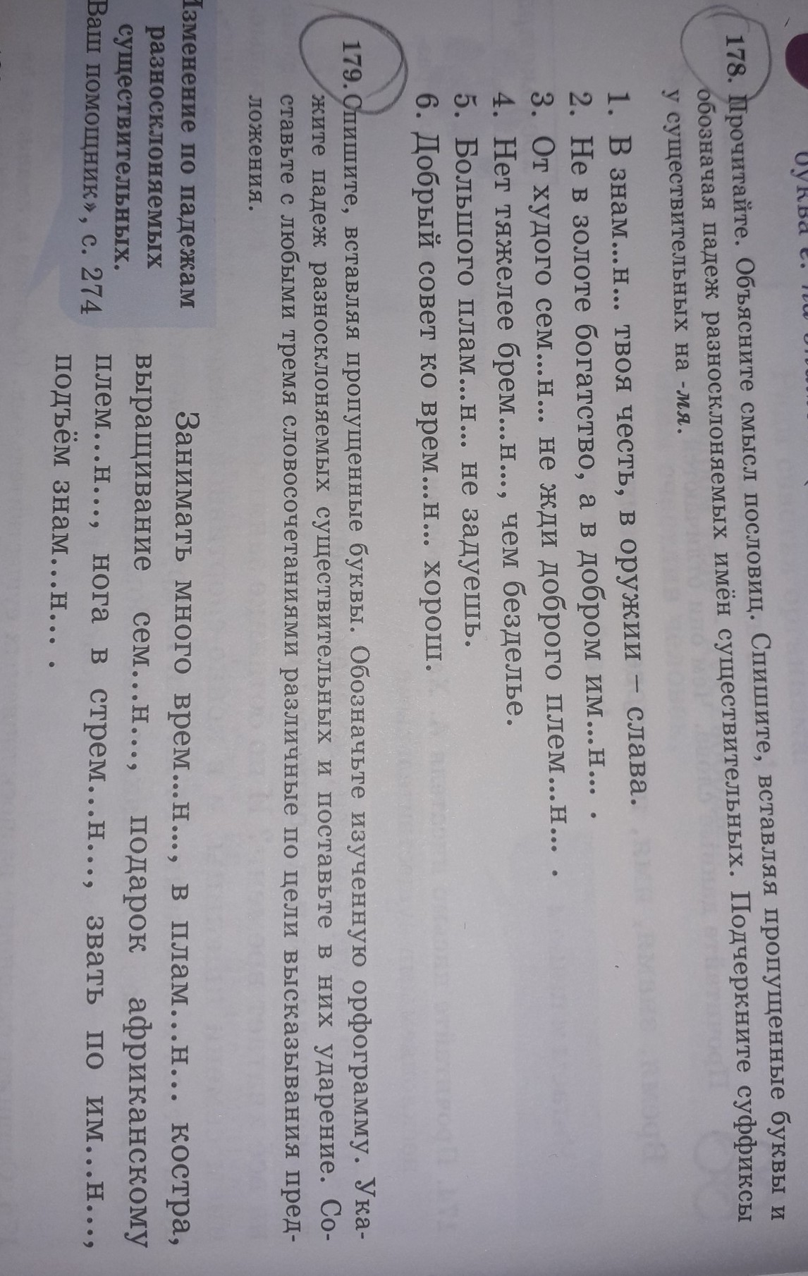 В знамяни твоя честь,в оружии -слава.2не в золоте богатство, а в добром имене.3 от худого семени не жди большого племяни.4нет тяжелее времени чем безделье.5большого пламяни не задуешь.6 добрый совет ко времени хорош