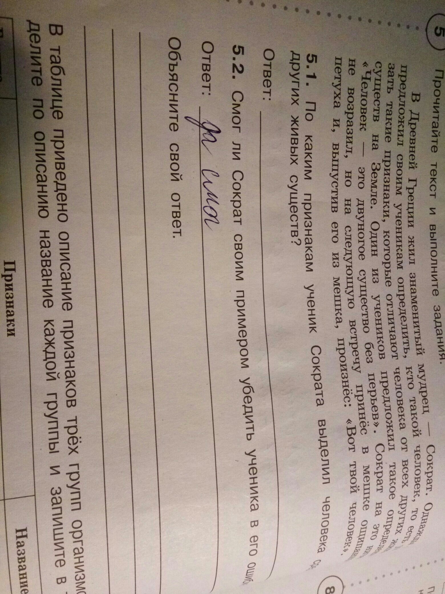 5.2-Думаю смог,потому что у петуха тоже две ноги,и если убрать перья он останется петухом,но не станет животным.