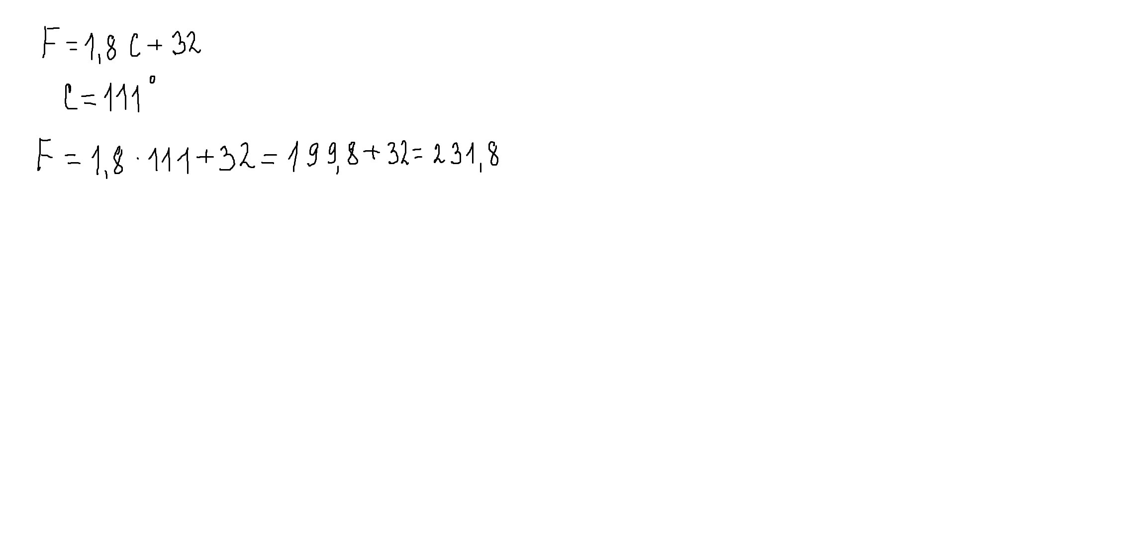 здесь просто надо в данную формулу F = 1,8C + 32 вместо С подставить 111. решение смотри внизу