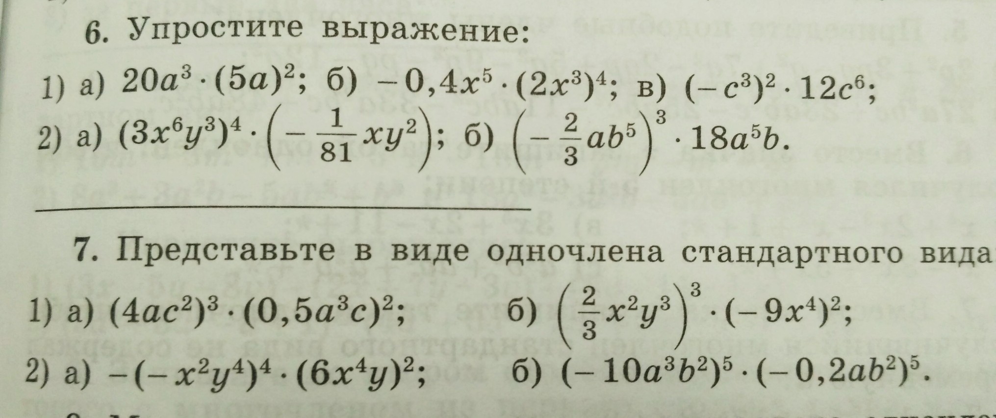 7. 1. а) 64а³с^6 * 0.25а^6с² = 16 а^9 с^8