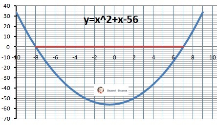 При каких значениях x трёхчлен x^2+x-56 принимает положительные значения решите расписав пж срочно