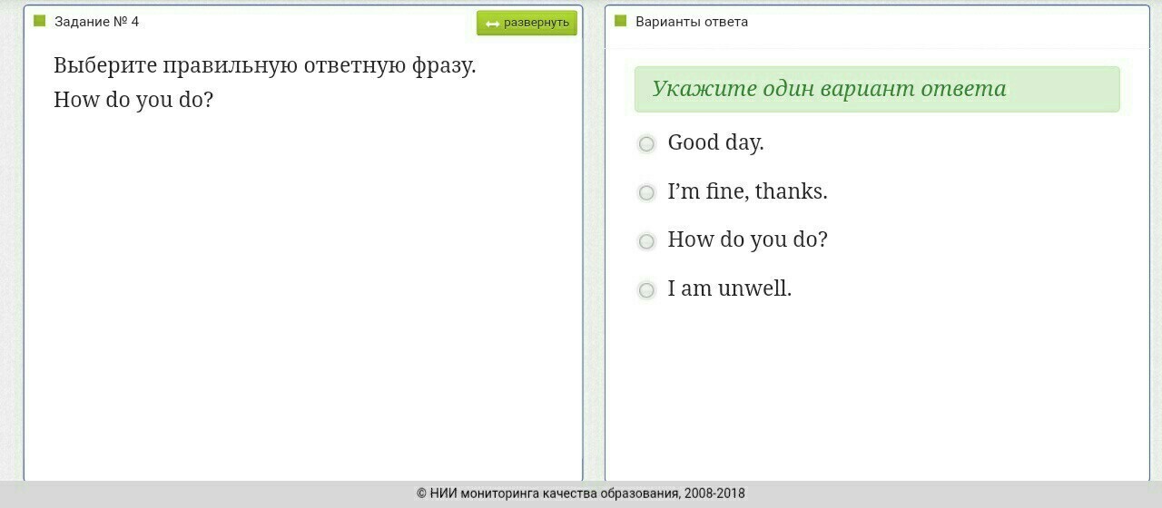I'm fine, thanks. 2 ответ верный!