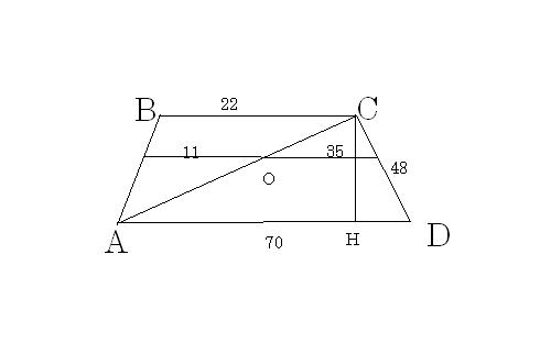 боковая сторона равнобедренной трапеции равна 48 см а средняя линия делится диаганалью на 2 отрезка равные 11 см и 35 см найдите углы трапеции