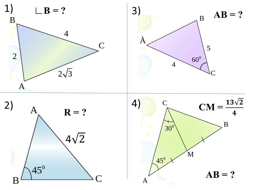 4. Решается с помощью теоремы синусов - стороны треугольников пропорциональны синусам противолежащих углов.