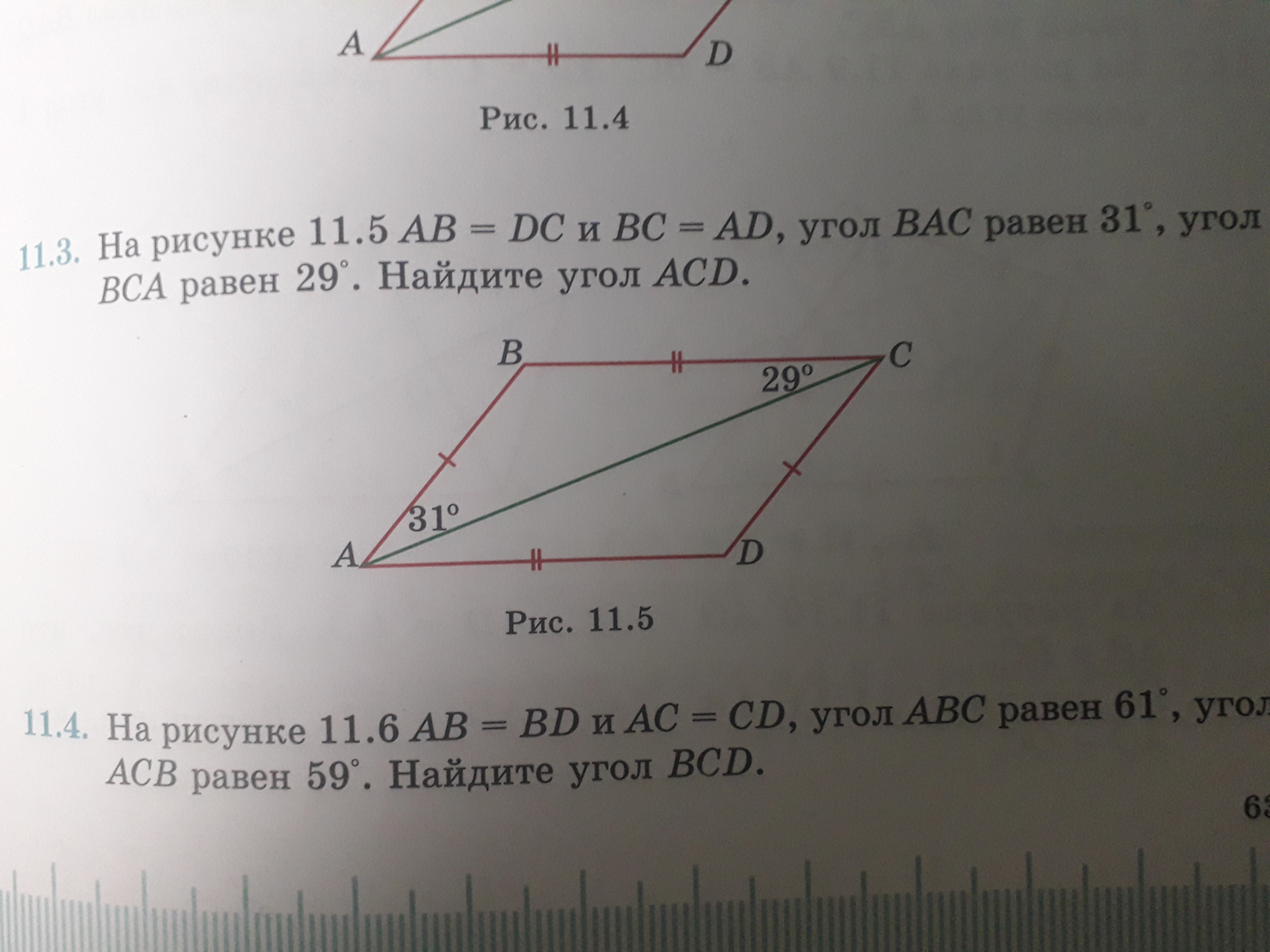 Если АВ=ДС и ВС=АД то и треугольники АВС=АДС и если <ВАС=31° то и <АСД=31°, а<ВАС=<САД=29°