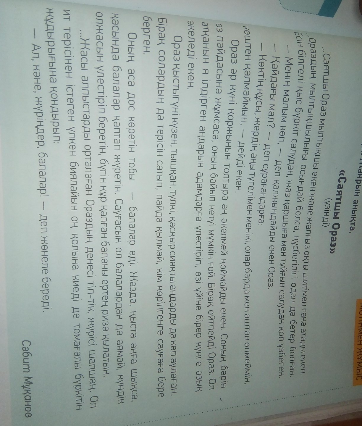 Соңғы сөйлем. " Осыған байланысты мен Ораз сияқты құсбегі болғым келеді деген шешімге келдім".