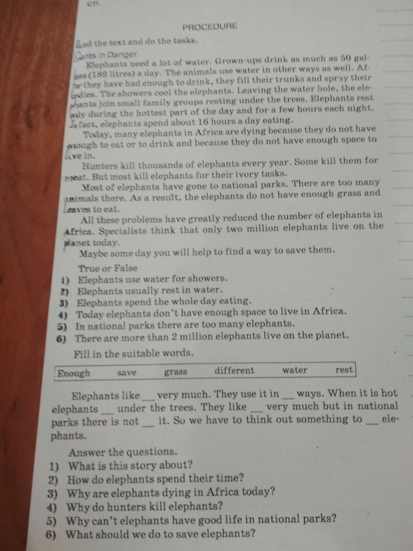 5. Because there are too many animals in national parks, elephants don't have enough grass and leaves to eat.