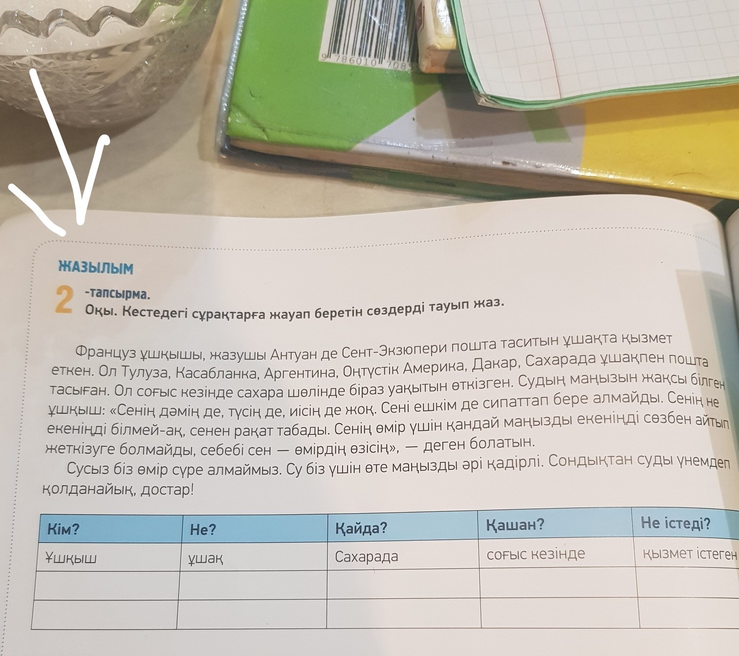 оқы. Кестедегі сшрақтарға жауап беретін сөздерді тауып жаз