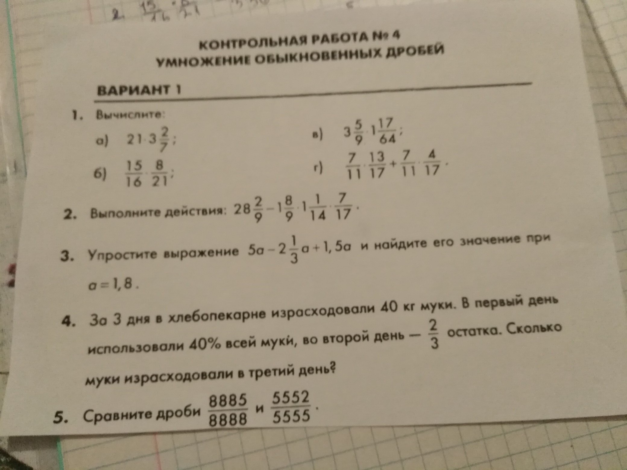 1) 40*0,4=16 кг (израсходовали в первый день)
