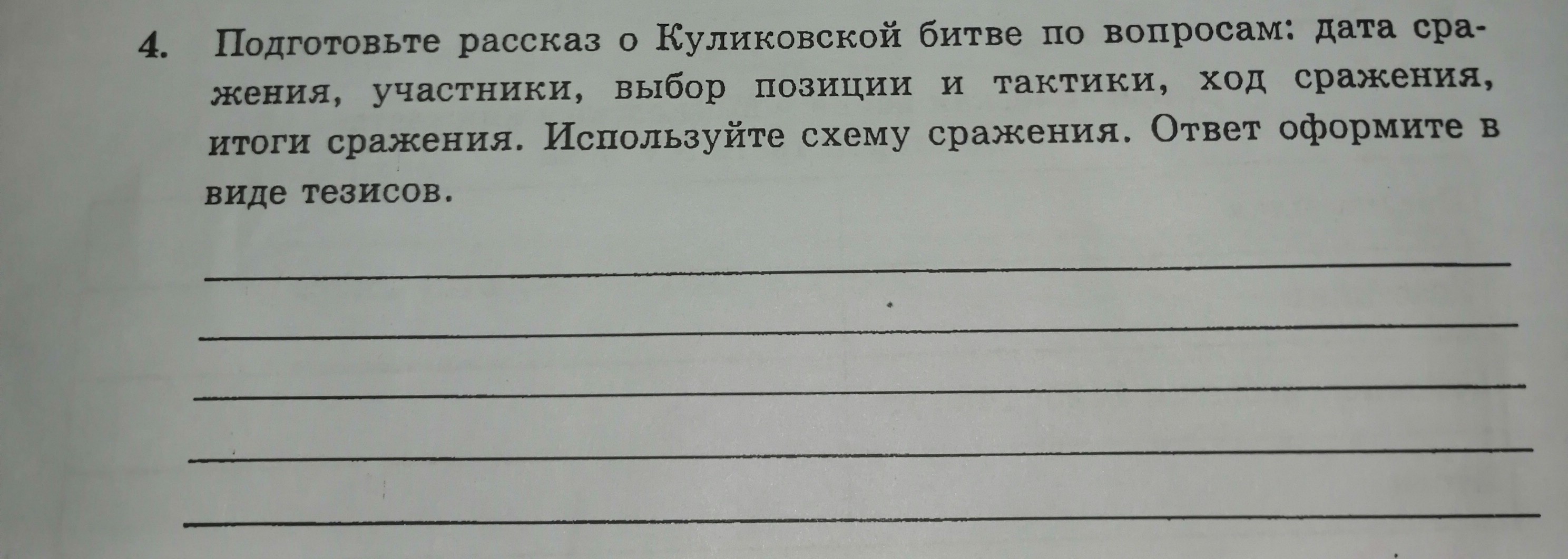 В куликовской битве произошедший в сори не помню участвовало два народа(татары,русские.).сначала произошли конные схватки потом пошла пехота перекрываемая лучниками сори утеря нет схемы это всё что я знаю