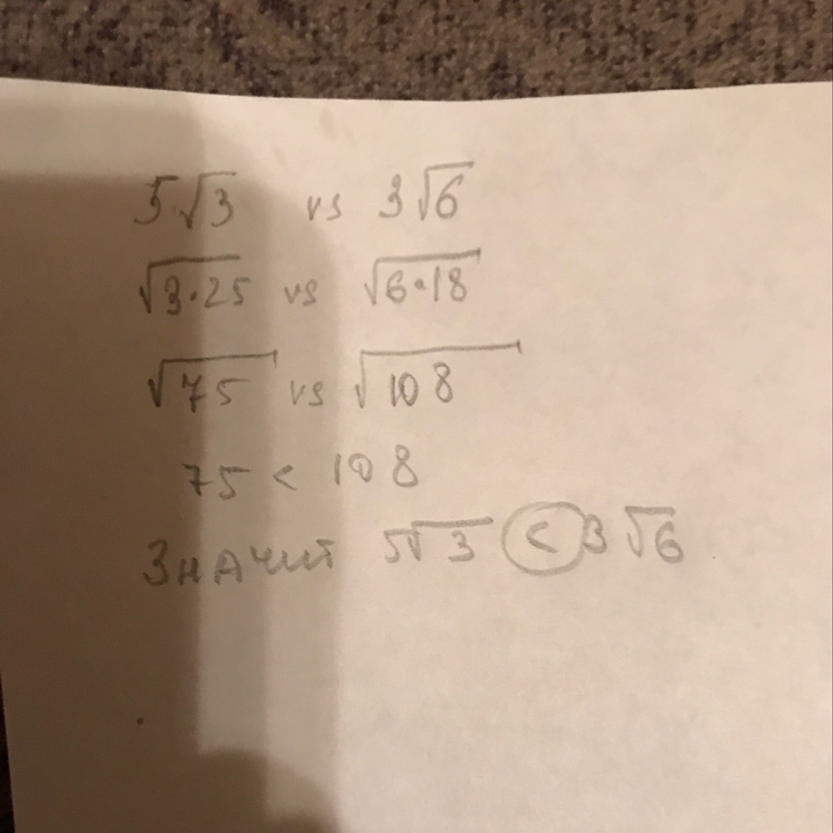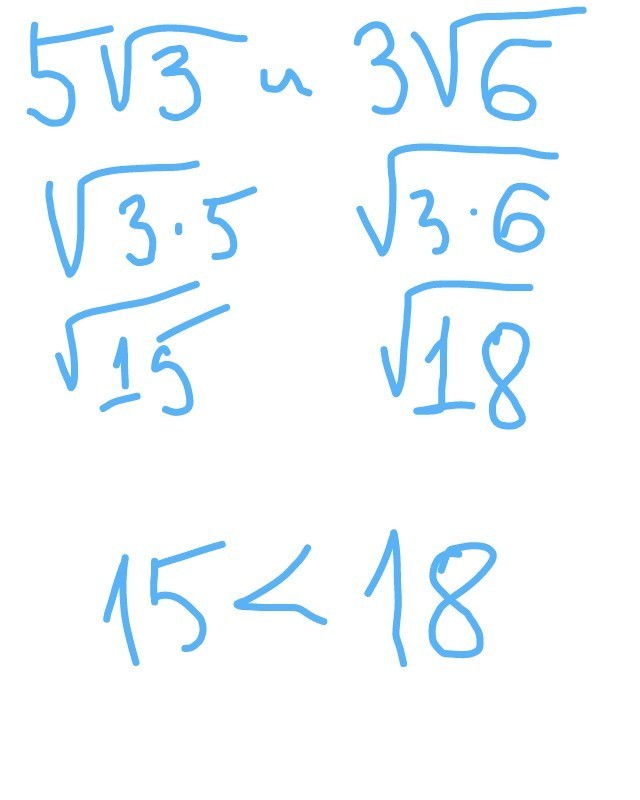 Ответ: 5 корней из 3 меньше 3 корней из 6