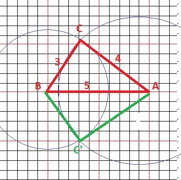 Этот способ применяется для построения треугольников по трём сторонам. По линейке соединяем концы отрезка АВ с точкой пересечения дуг окружностей - С или С1 и получаем ΔАВС или ΔАВС1.