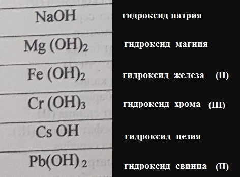 гидроксид + название элемента + валентность (если она переменная, у IV-VI групп)