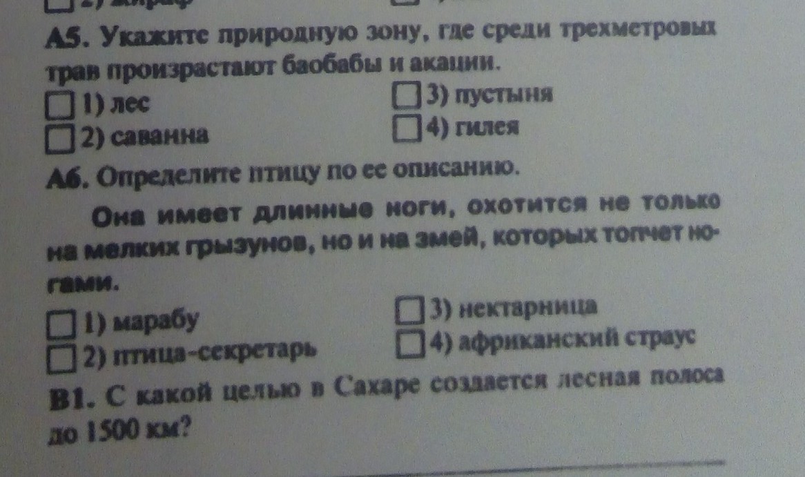 В1 В сахаре создается лесная полоса 1500 км для того,чтобы защищать саванну от сухих ветров