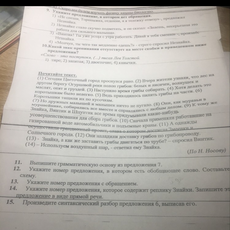 15. Коротышки (подлежащее, выражено существительным) тащили (сказуемое, выражено глаголом) их (дополнение, выражено местоимением) по кусочкам (обстоятельство, выражено существительным).