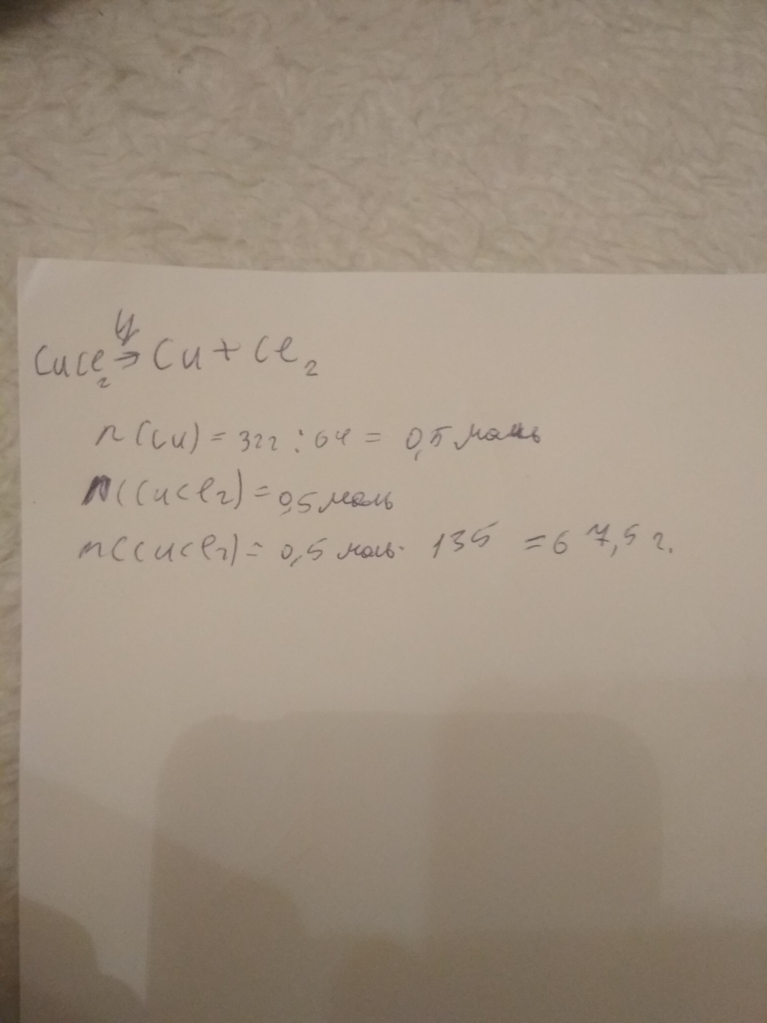 Какая масса хлорида меди содержалась в растворе, если в результате электролиза образовалось 32 г меди?