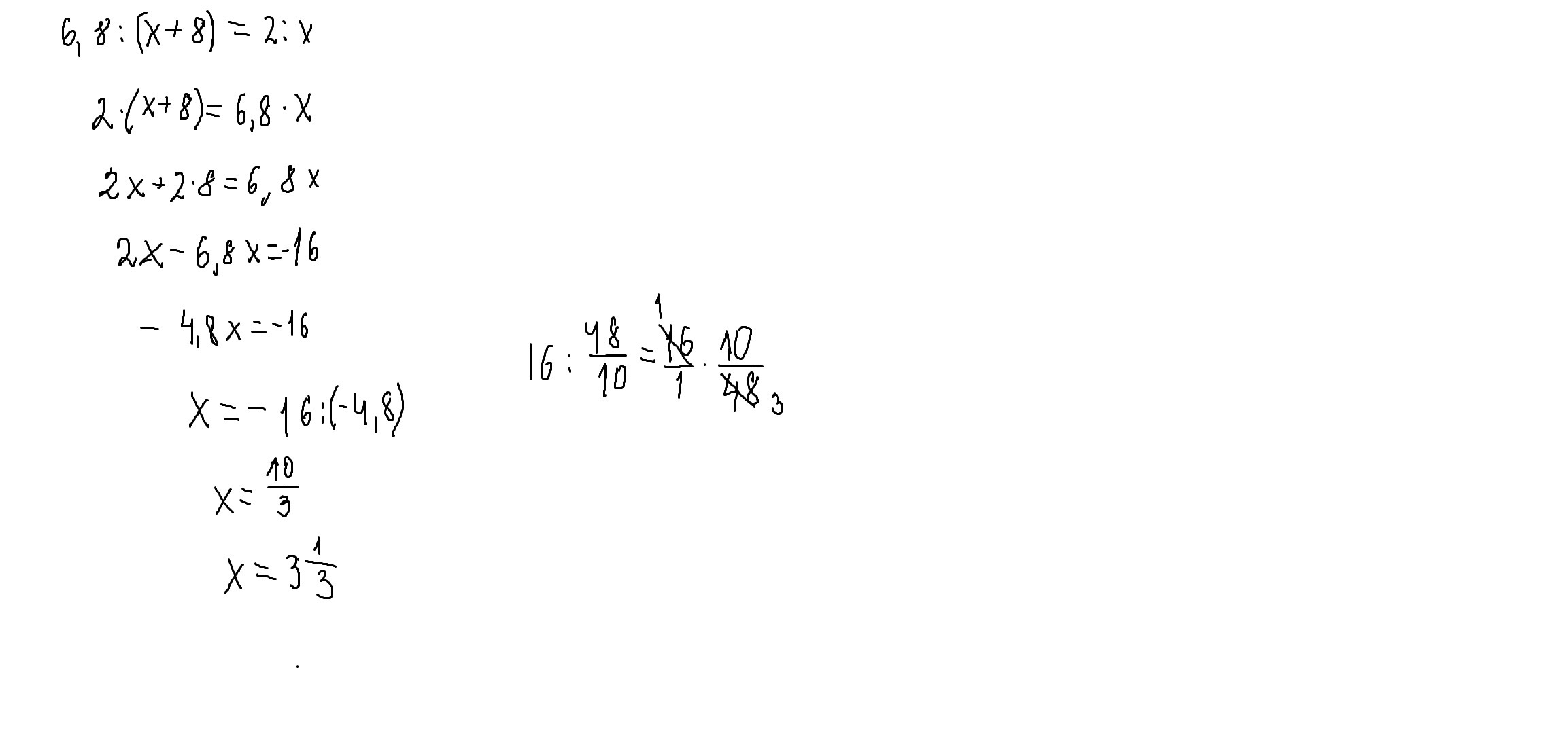 решаем,применяя основное св-ва пропорции-произведение крайних членов,равно произведению средних членов пропорции
