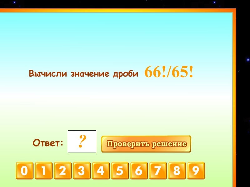 (65+1)!/65!=65+1 ,то есть 66!/65!=66