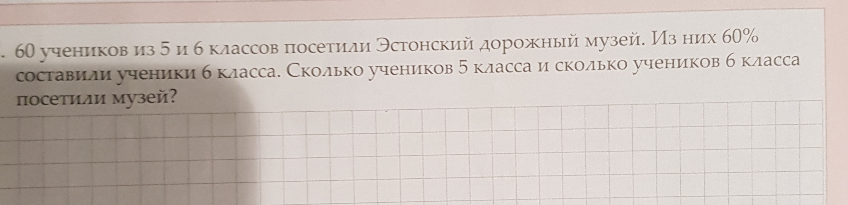Ответ: 36 учеников из 6 класса, 24 ученика из 5 класса посетили музей.