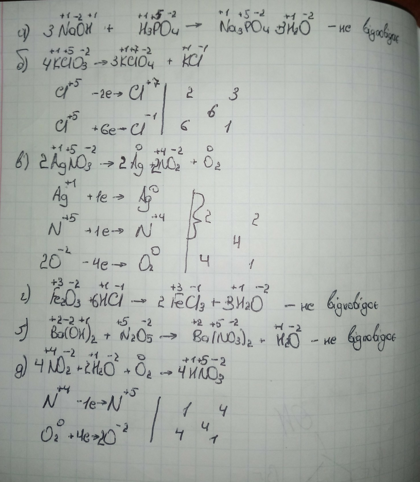 У реакціях а) г) ґ), елементи не змінюють свій ступінь окиснення, отже вони не відповідають окисно-відновним реакціям