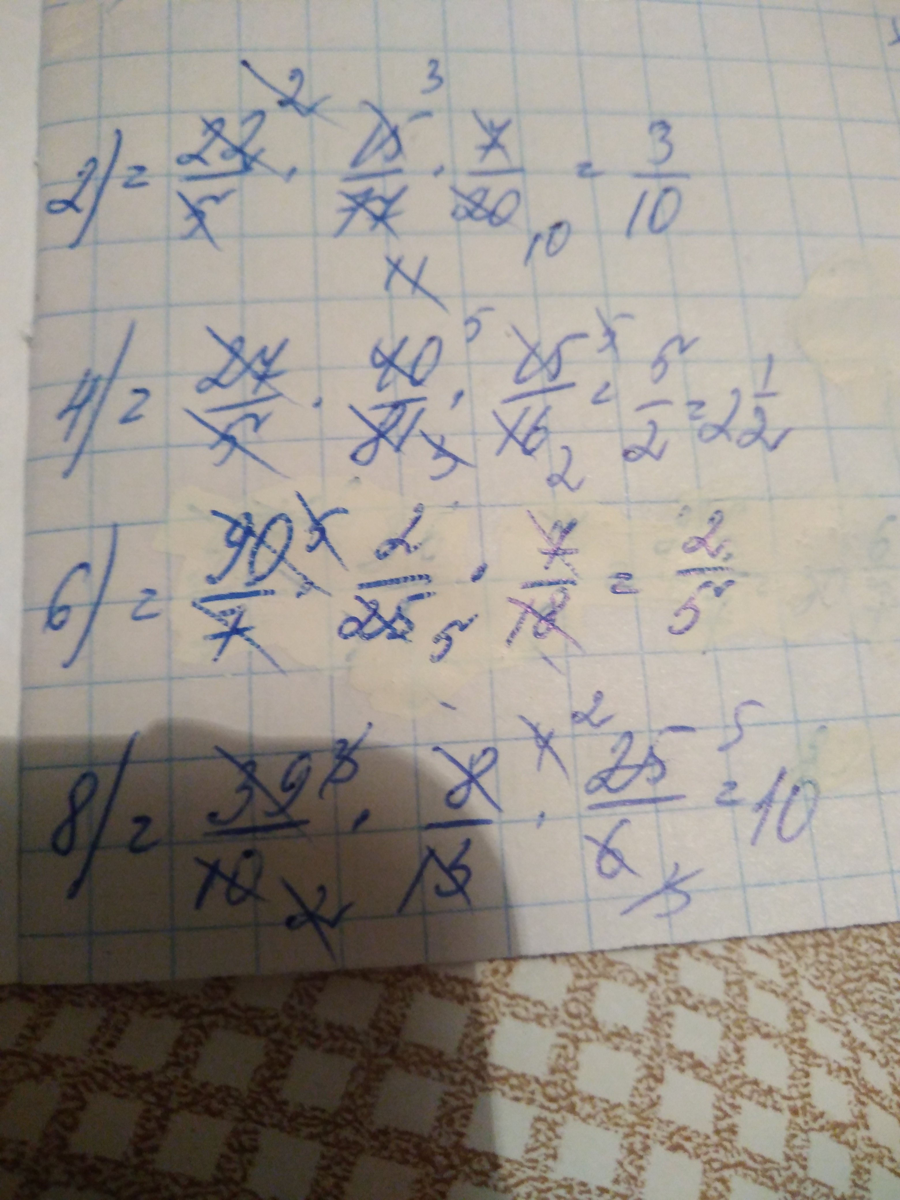 во всех примерах общая черта все числители сверху, знаменатели снизу, сокращаешь все , что можно