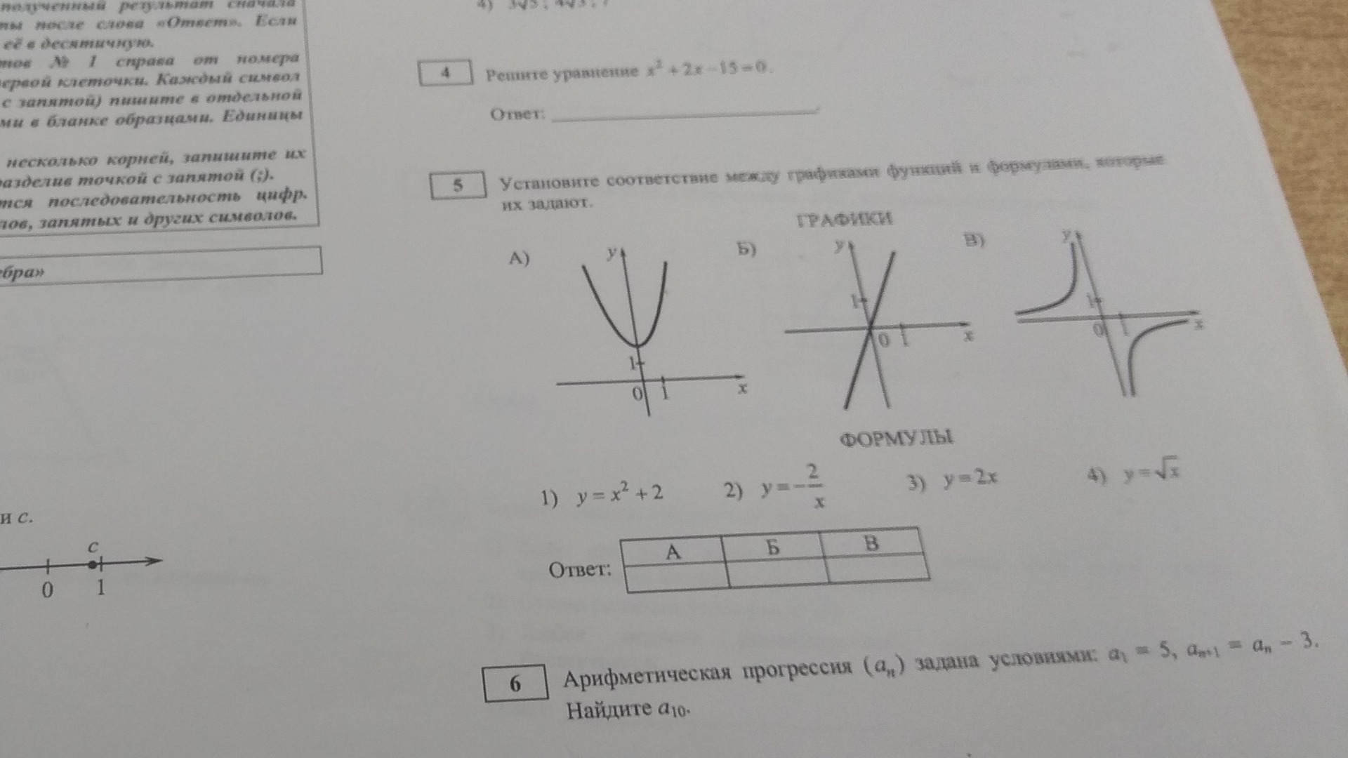 1 - а(парабола со смещением на 2 единицы вверх по оУ), 2 - в, 3 - б