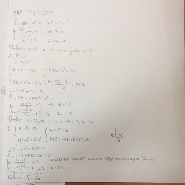 №2)Периметр прямоугольника 56см, а его площадь равна 195 см^2.Чему равны стороны прямоугольника