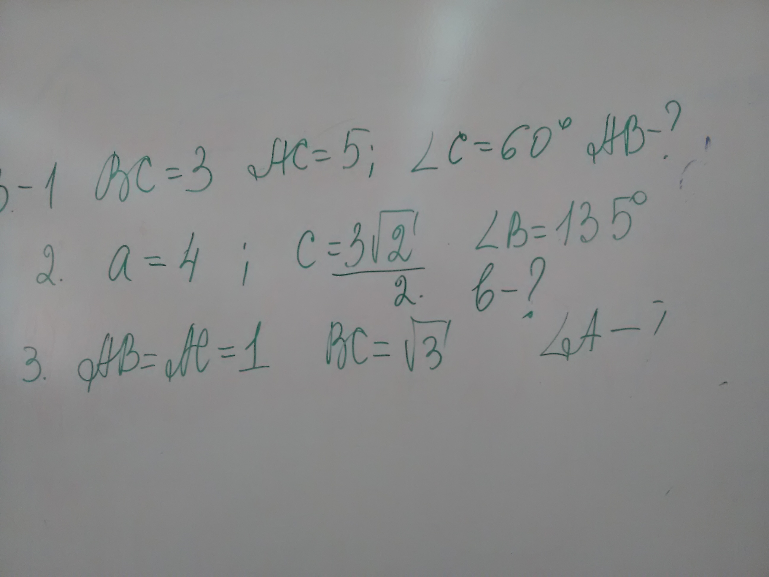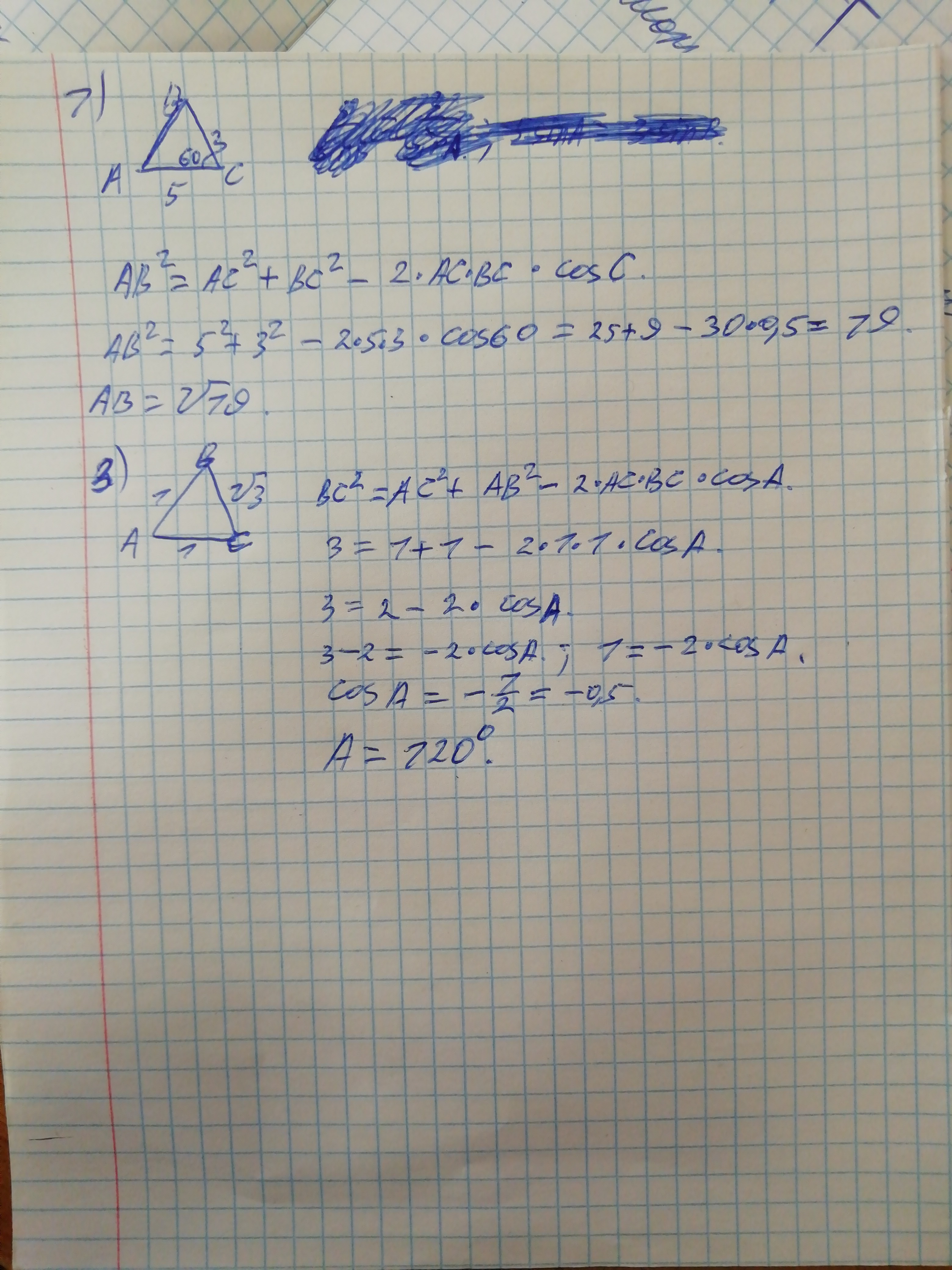 Решаем через теорему косинусов. Со второй задачей не понял что в исходных данных