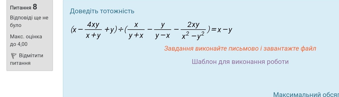 3) (x-y)^2/(x+y) : (x-y)/(x+y)=x-y, что и требовалось доказать