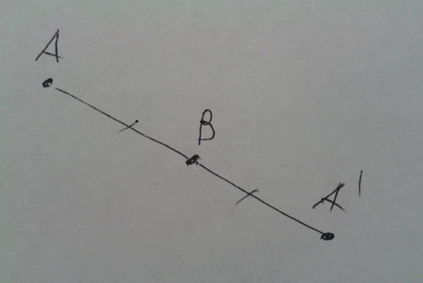 даны точки А и В. постройте А' симметричную точке А относительно точке В.