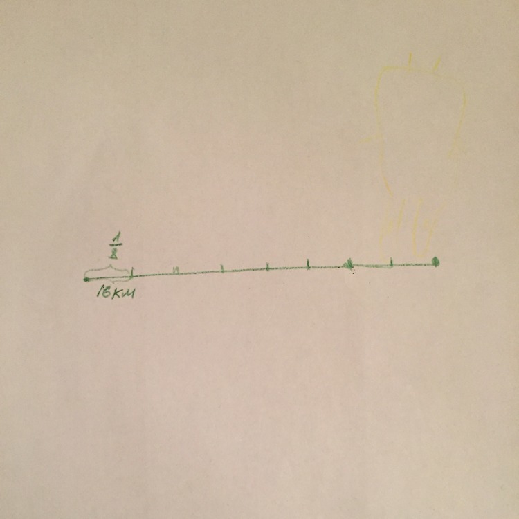 Пажалуйста срочно сделай ЧЕРТЁЖ К ЗАДАЧЕ:Туристы в первый день прошли 16км,что составило восьмую часть их маршрута.Сколько километров им осталось пройти? чертежом